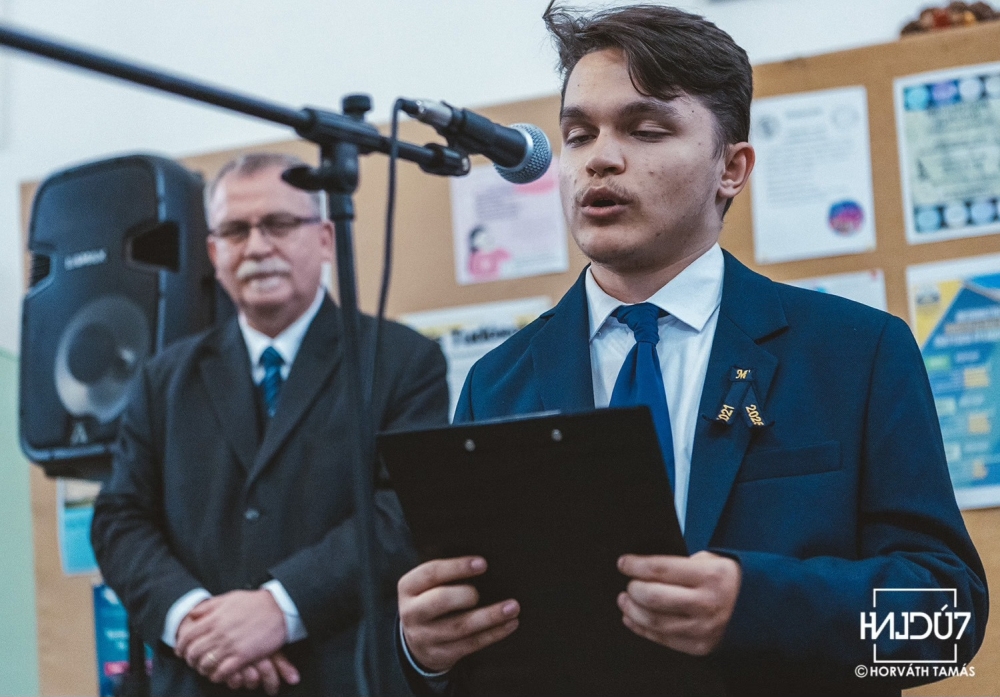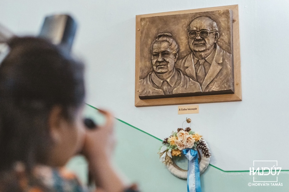 Az ünnepségen először az adományozó, Lévai Antal mondott rövid beszédet, amelyben kiemelte, hogy Csiha László és Csiha Lászlóné olyan értékeket adtak tovább a tanítványaiknak, amelyekkel növendékeik másokat is arra tudtak és tudnak ösztönözni, hogy jobb emberekké váljanak. A hálás utókor féltő kegyelettel őrzi emléküket és munkáikat. Ezt követően a gimnázium három magyar szakos tanára olvasott fel szemelvényeket Csiha László írásaiból, felidézve Laci bácsi és Erzsike néni szellemiségét. A gimnázium közössége nevében Gyulai Sándor igazgató köszönte meg az alkotást, majd Horváth Tibor szobrász és Lévai Antal közösen leleplezték az emlékművet, amelyet nagy tapssal köszönt meg a közönség. Az avatóünnepség zárásaként a gimnázium diákjainak előadásában francia nyelvű szavalást hallgathattak meg a megjelentek, így emlékezve meg arról, hogy Csiha László a magyar nyelv és irodalom mellett francia nyelvet is tanított.